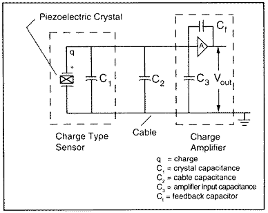 图2和图3显示了典型的电荷放大器系统原理图,包括:传感器,低噪声电缆和电荷放大器。